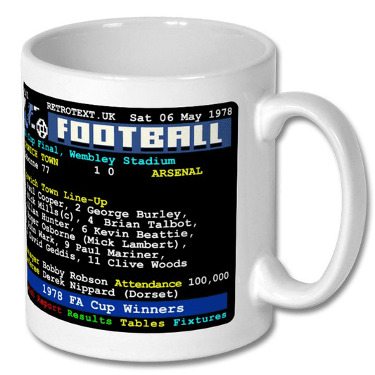 Ipswich Town 1978 FA Cup Winners Teletext Mug with Player/Manager Choice