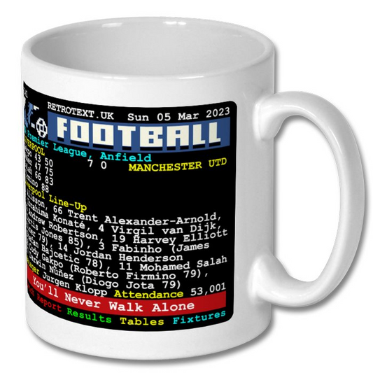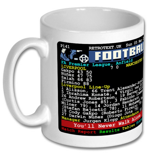 2023 Liverpool 7 Manchester Utd 0 Jurgen Klopp Teletext Mug