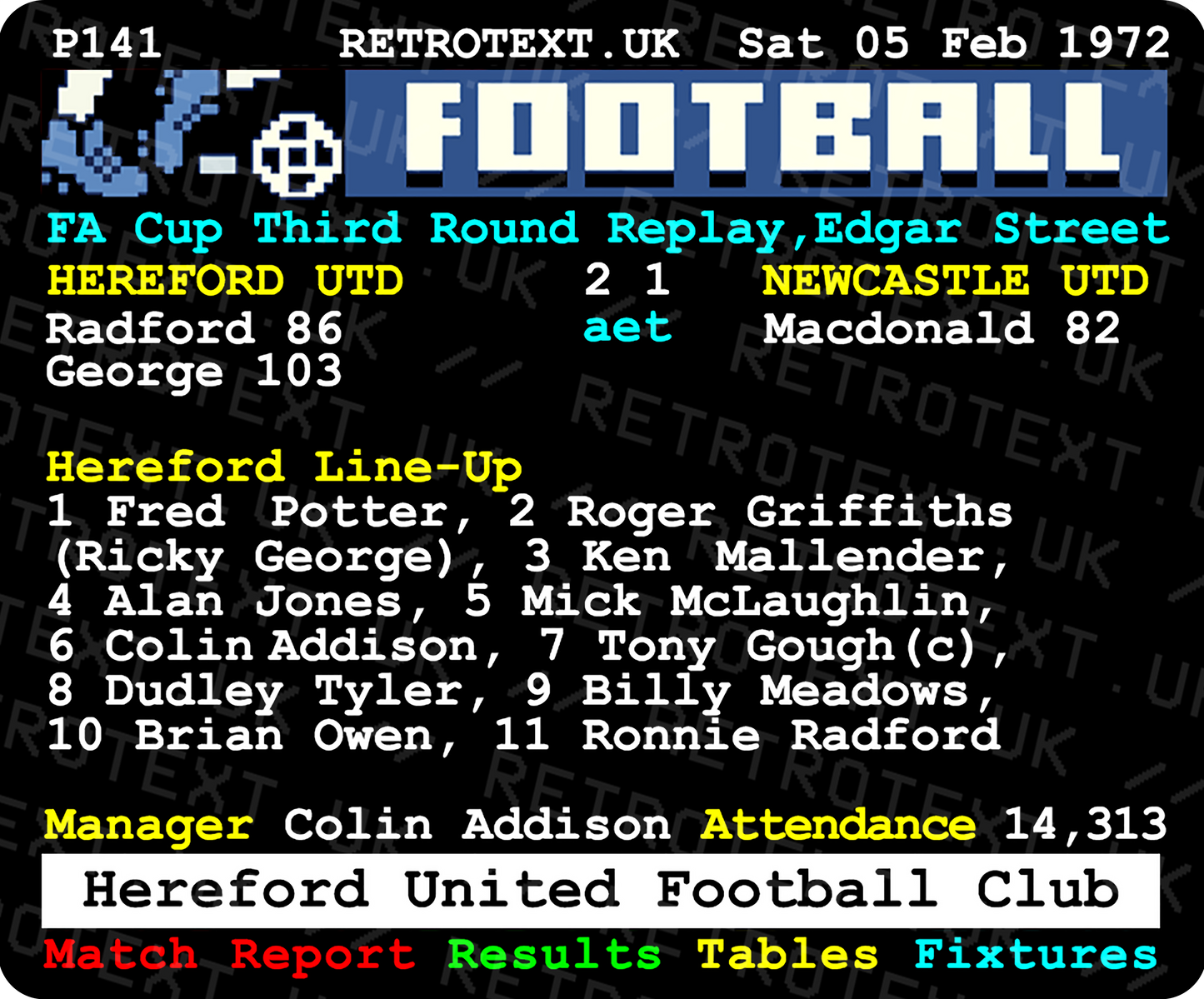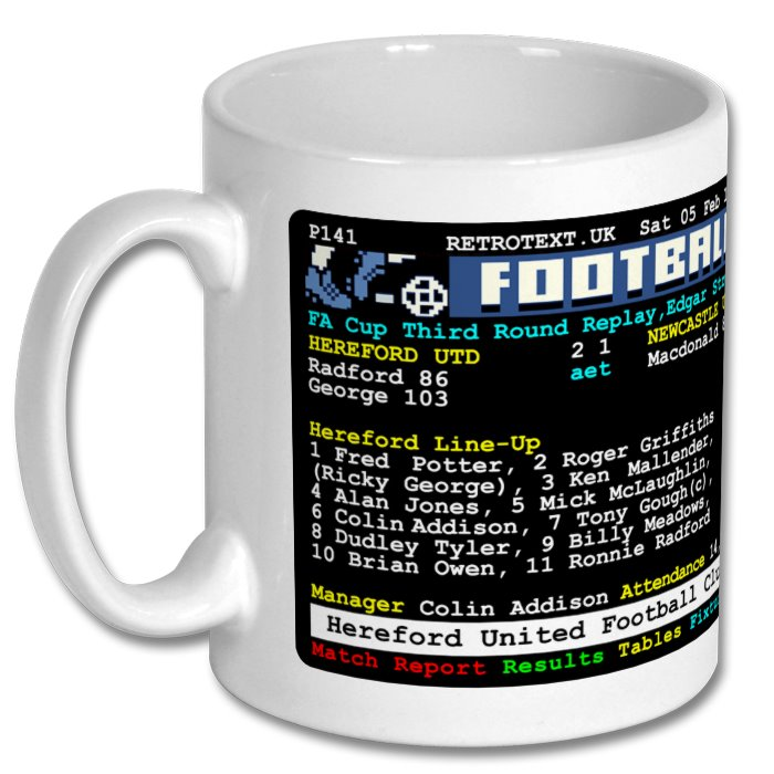 1972 FA Cup 3rd Round Hereford Utd v Newcastle Utd Ronnie Radford Teletext Mug