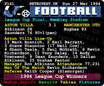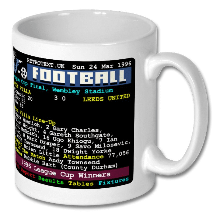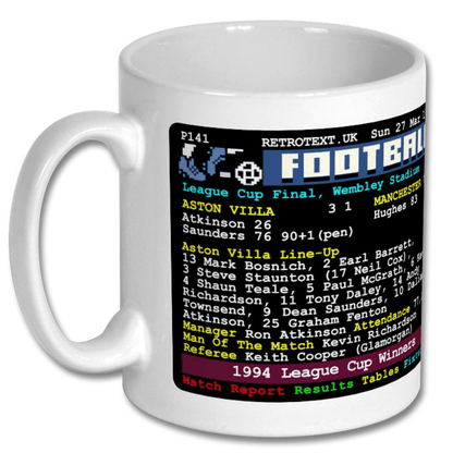 Aston Villa 1994 & 1996 League Cup Winners Teletext Mug