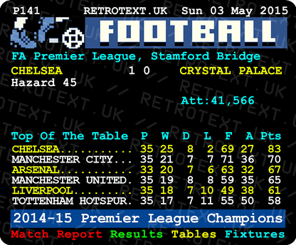 In his second spell in charge, Jose Mourinho led Chelsea to their fourth Premier League title, with this win over Crystal Palace putting them out of reach of the chasing pack. Chelsea eventually finished eight points clear of second-placed Manchester City.