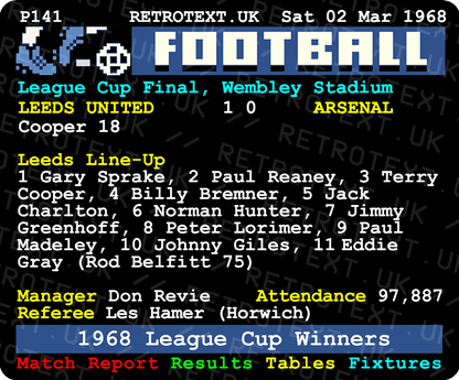 Leeds United 1968 League Cup Winners Don Revie Teletext Mug
