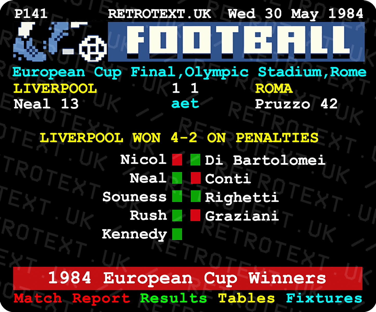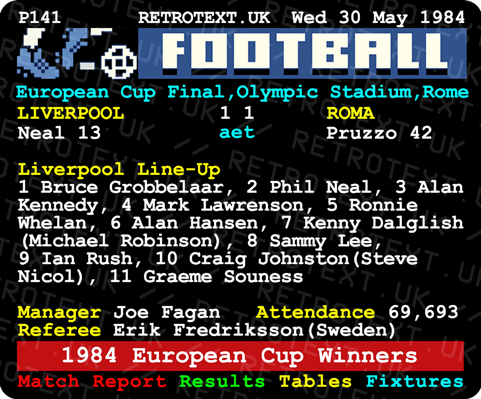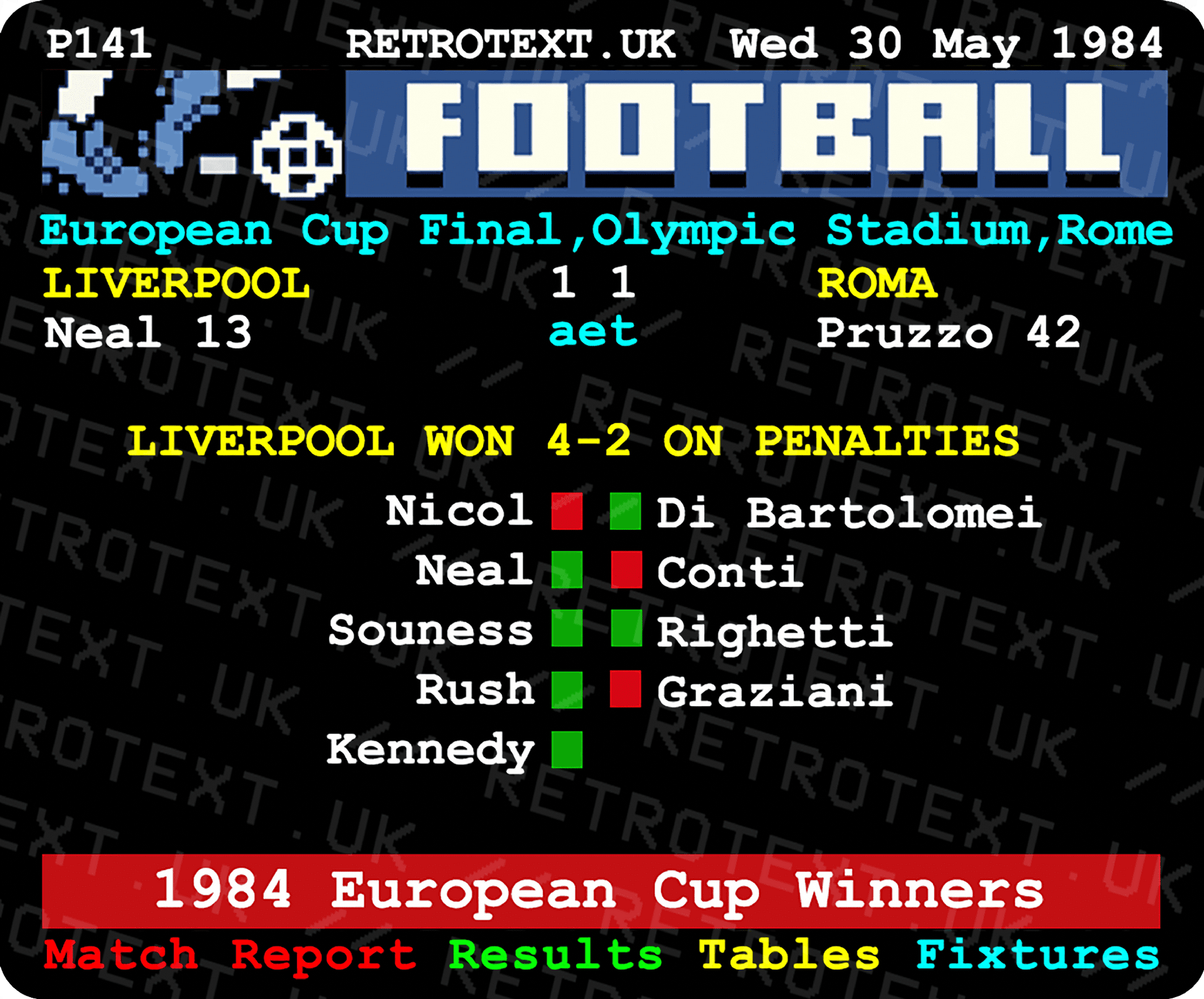 Liverpool 1984 European Cup Winners Teletext Mug