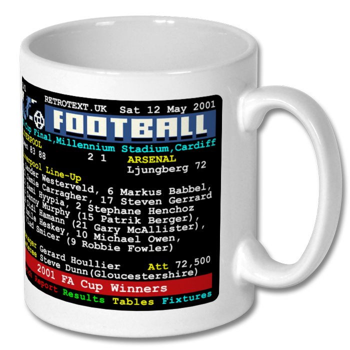Liverpool 2001 FA Cup Winners Steven Gerrard Teletext Mug