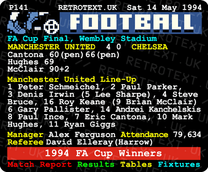 Manchester United 1994 FA Cup Winners Eric Cantona Teletext Mug