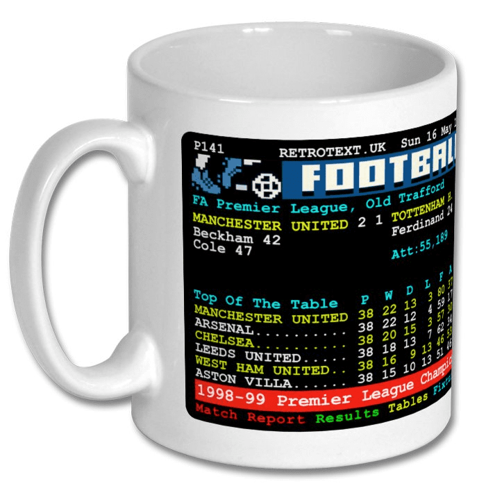 Manchester United 1999 Premier League Champions Alex Ferguson Teletext Mug