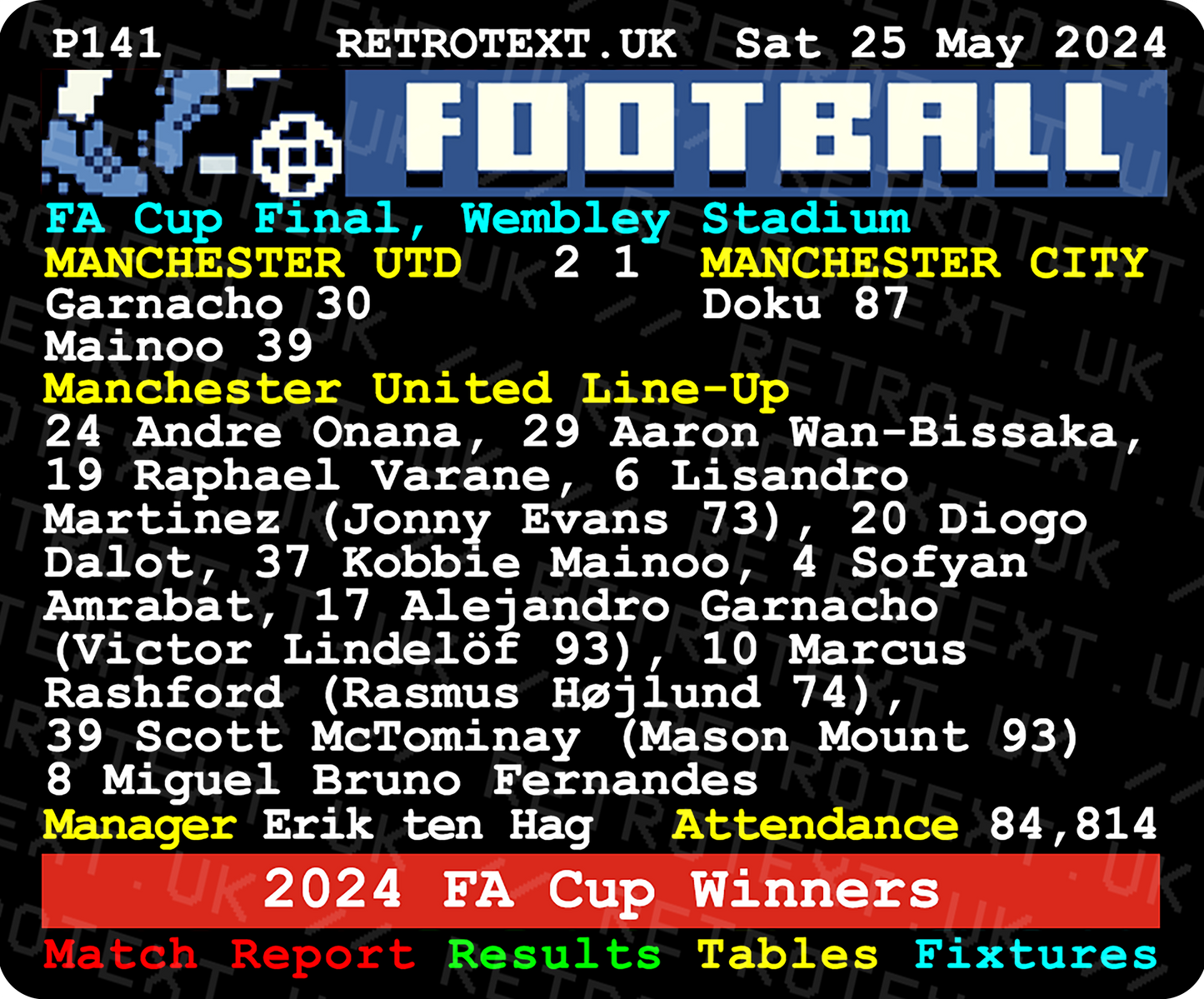Manchester United 2024 FA Cup Winners Teletext Mug