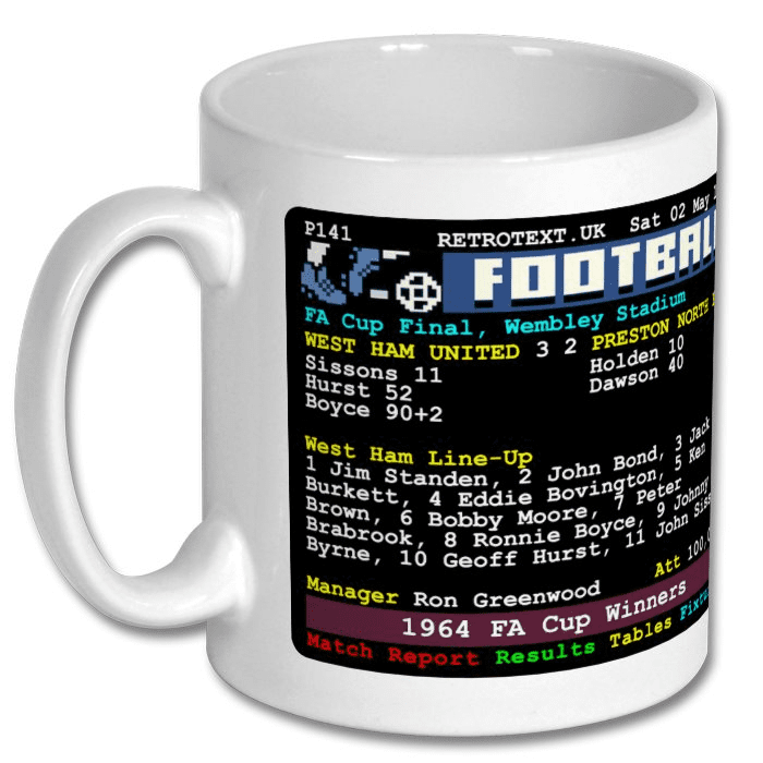 West Ham United 1964 FA Cup Winners Bobby Moore Teletext Mug